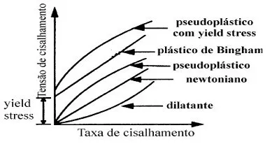 Os fluidos com comportamentos Não Newtonianos apresentam diferentes tipos de comportamentos reológicos. São cinco tipos de comportamentos reológicos avaliados com reômetro de laboratório: plástico, pseudoplástico, dilatante (independentes do tempo que são cisalhados), tixotrópico e reopectico, (dependentes do tempo em que são cisalhados).